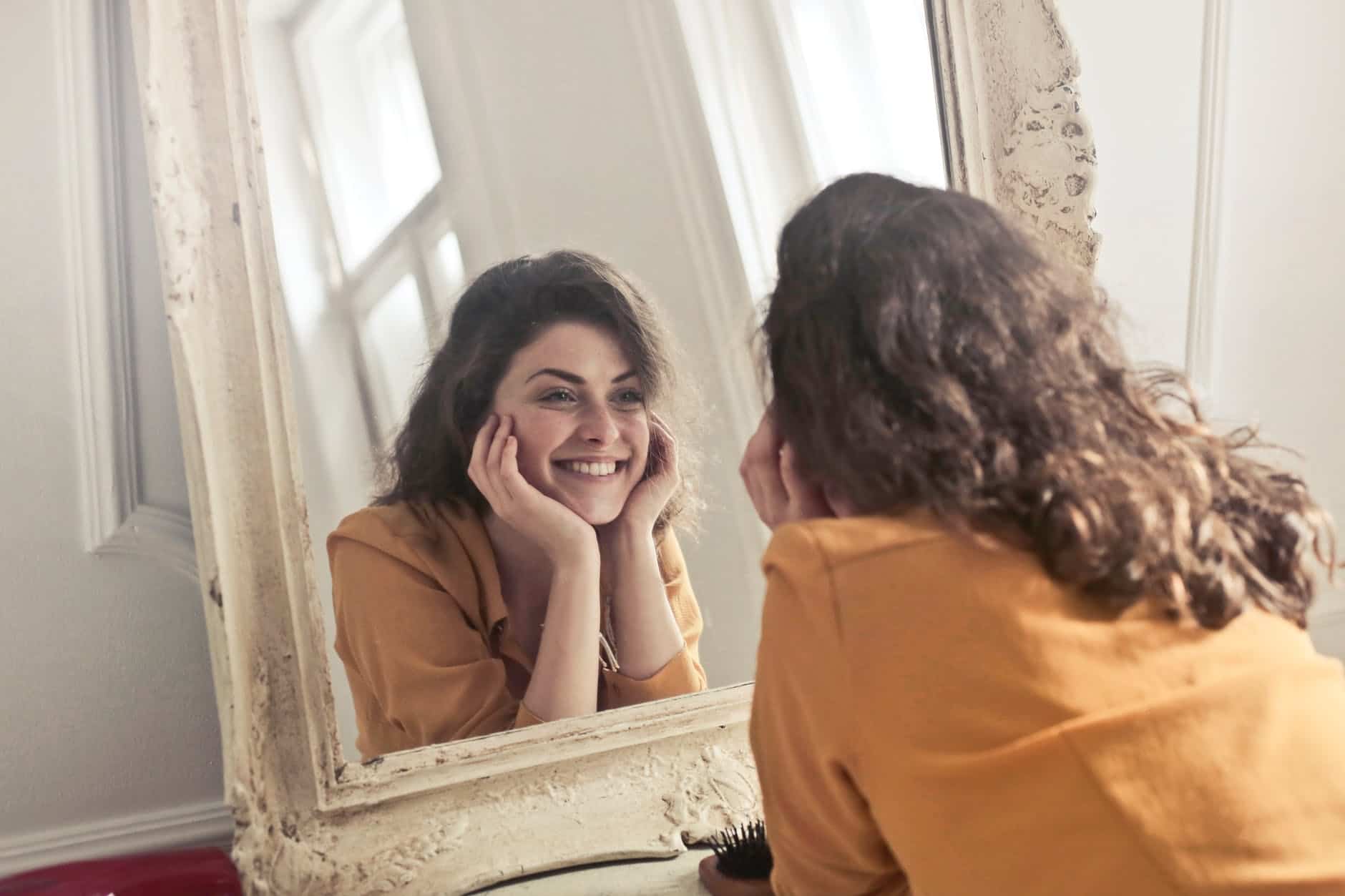 When I did the 7-Day Challenge with my group, mirror work was the first day because women are having a hard time looking at themselves in the mirror and saying, “I love you.” It was about connecting. It had two levels. One is almost like connecting to yourself, to your soul, you look at yourself in the mirror, in your eyes and you say, “I love you.” There is a book called Mirror Work from Louise Hay. You can read all about it. But the gist of it is look in your eyes in the mirror and say, “I love you.” The other level of mirror work, of doing this type of work in the mirror is loving your body. It might not be a quick win for you to look at your naked body in the mirror and just love her but you can start with loving little things about you.